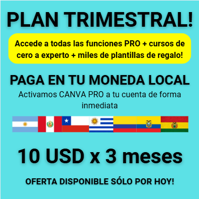 Tu competencia ya usa Canva Pro, crea piezas increíbles en minutos y atrae más clientes. Cada día que pasás con la versión gratuita, perdés tiempo, oportunidades y dinero.